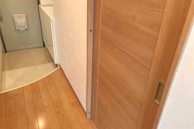 いよいよLDKへ。玄関をあがってすぐ正面に扉があります。