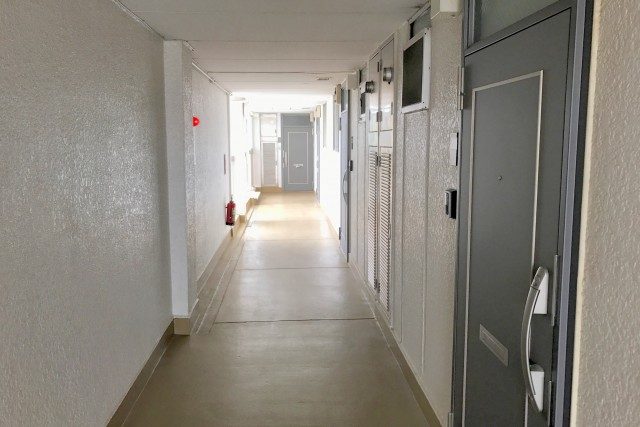共用廊下は外に面しているお部屋と内廊下っぽく壁に面しているお部屋があります。