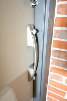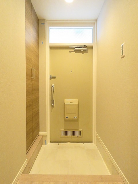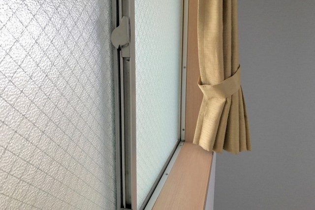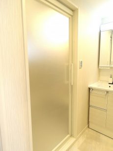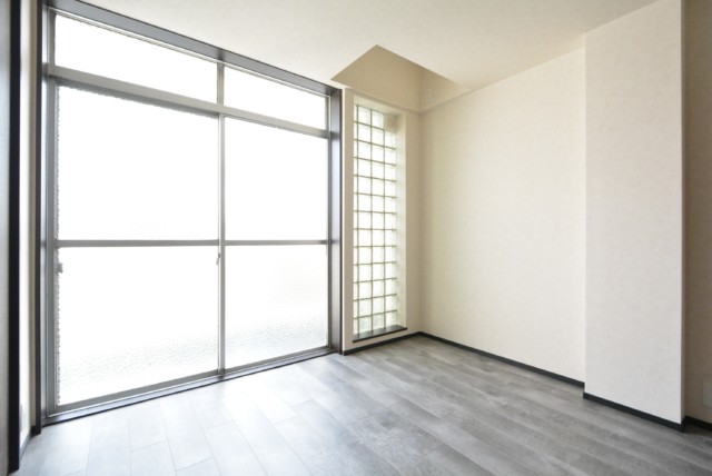 外の廊下に面しているこちらの窓は半透明のガラスを使用し、プライバシーが確保されています!