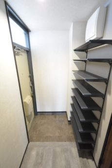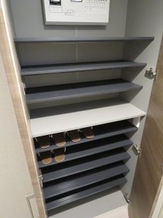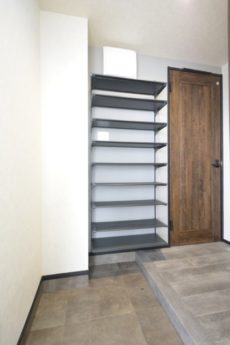 ちなみにシューズBOXは廊下の途中にあります。棚の高さを変えればブーツなどもお仕舞いただけます。