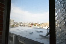 東側の窓の外は隣の屋上越しの開放的な眺め。