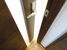 玄関横に設置されたシューズBOXはたっぷり入るトールサイズ。これなら入りきらない靴をお部屋で管理する、なんて心配はなさそうです。表扉の一部には縦長の鏡がついており、お出かけ前の身だしなみチェックもサッと済ませられて便利♪