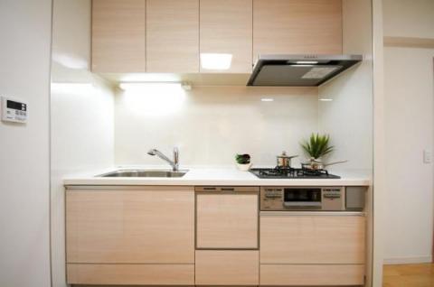 浄水機能付き水栓、3口ガスコンロ、食洗機付きとキッチンはスペック◎。