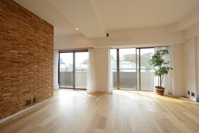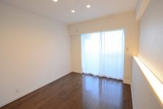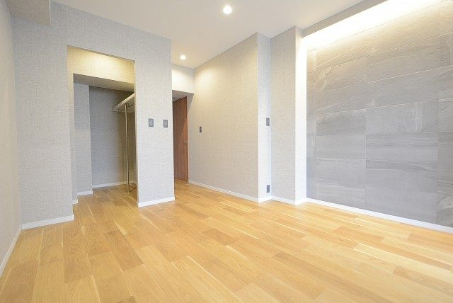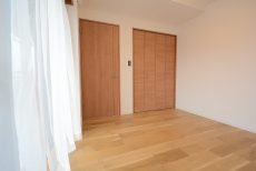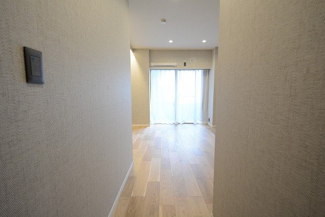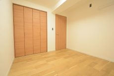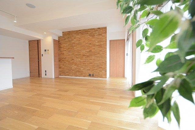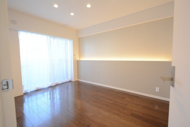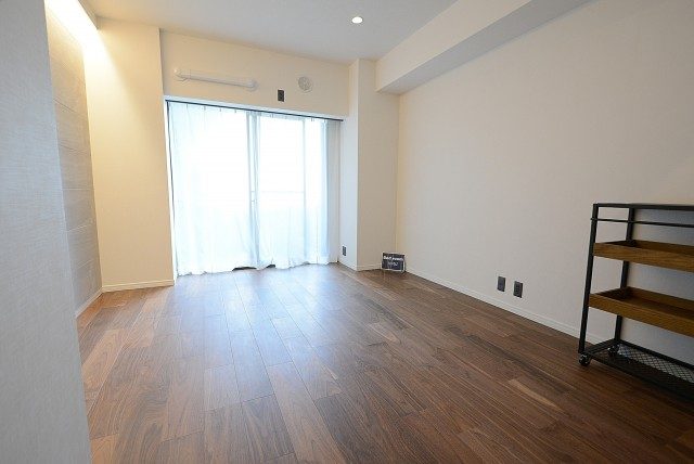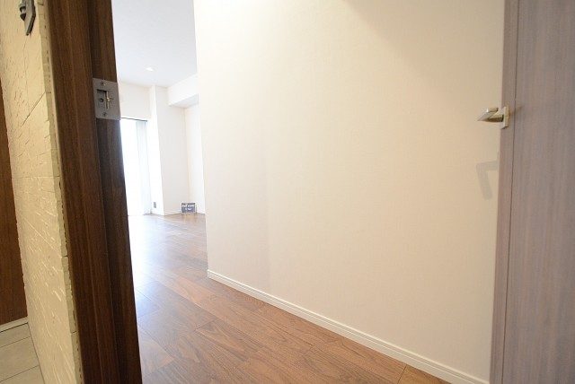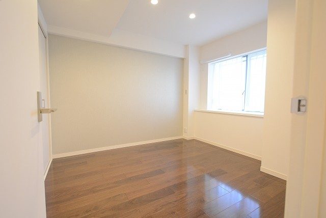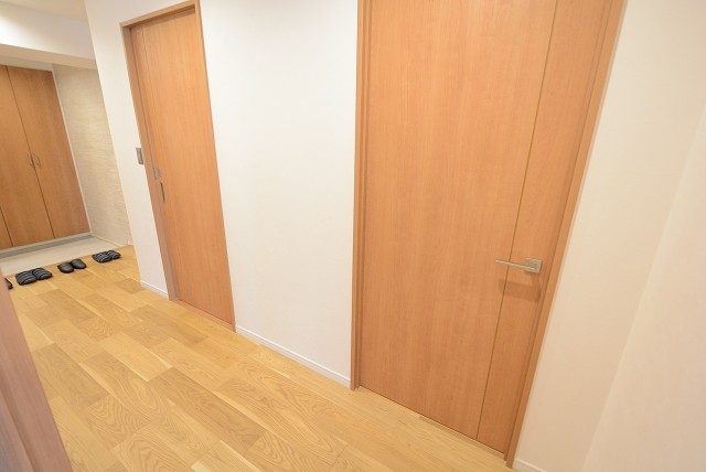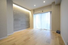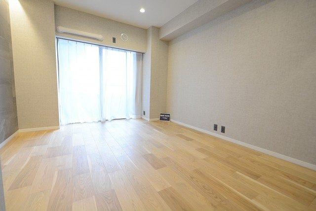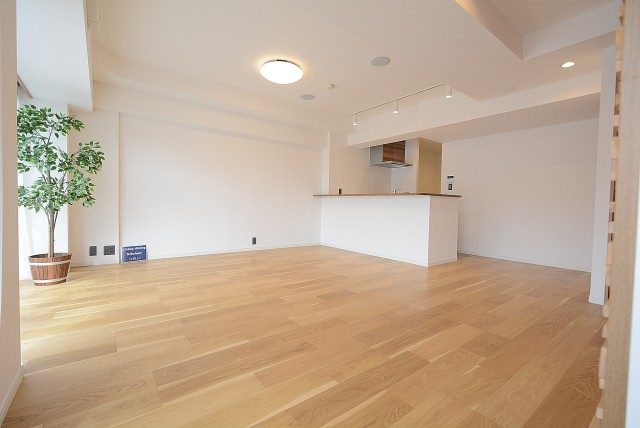 白っぽい色合いのツルツルしたフローリングと白いクロスの明るい空間です。