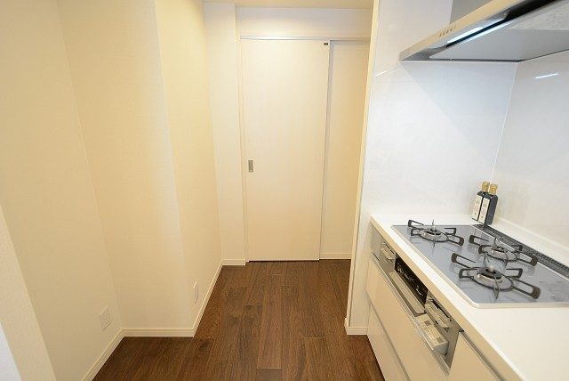 キッチンは廊下側からも入れるようになっています。動線も◎。
