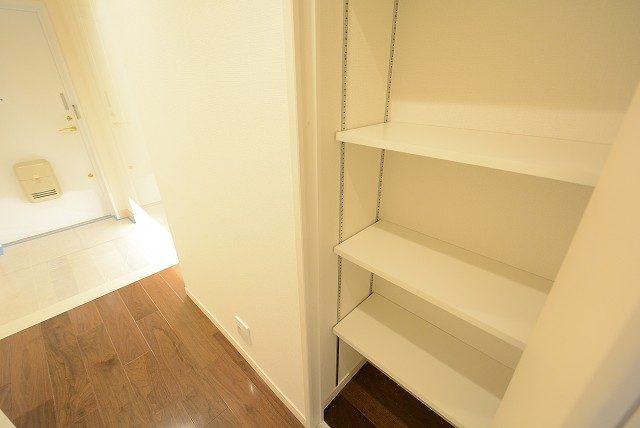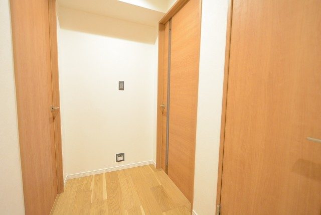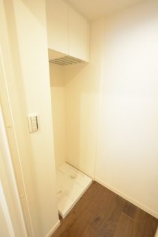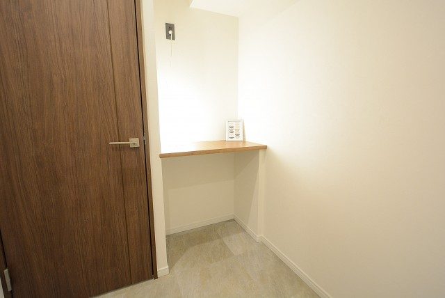 洗濯機置場の他には収納スペースやデスクなどがあります。