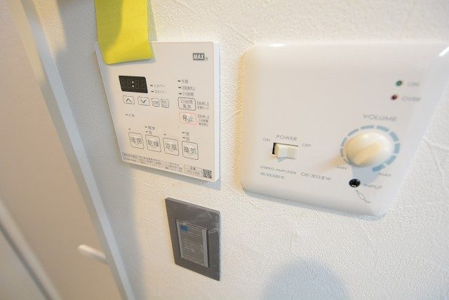 書斎の背後に有線放送の操作パネルがあるので、こちらを操作して頂ければリビングで有線放送を楽しむことが出来ますよ!