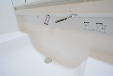 水栓はビルトインタイプです。洗面ボウル付近の空間を広く使えますし、水栓の根本に水たまりができないのでお手入れも簡単です。