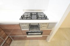 3口のガスコンロにはグリルも付いているので、お肉やお魚等もこんがり美味しく焼き上げることが出来ますよ。グリルに入れることのできるフライパンなどを使えばグラタンなども作ることが出来ますよ!