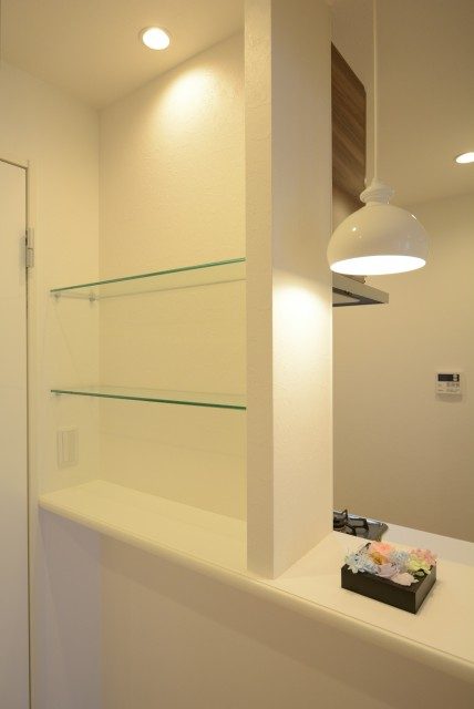カウンター 玄関収納 玄関前 目を引く棚です。
