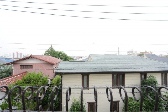 5階バルコニーからの眺望です。本日は生憎の空模様で雨がシトシトですが、晴れた日は清々しい青空いっぱい感じられる眩しい眺望なんでしょうね。