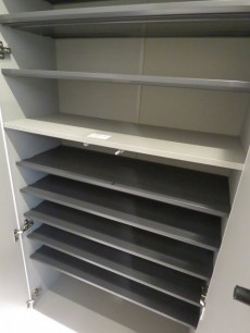 シューズボックスは収納力のあるトールタイプ。棚の高さを変えられるのでブーツやヒールなどの高さのある靴でも綺麗に収めることができますよ。隣にはストック等の収納に便利な収納棚も設置されています。