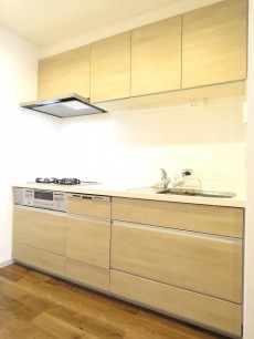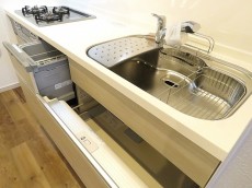 水栓は浄水機能付き、3口ガスコンロ、食洗機付きとスペック◎。