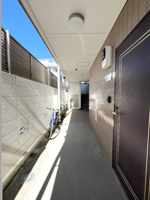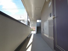 共用廊下は外廊下タイプ。お隣は駐車場なので眺めに開放感があります。