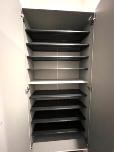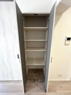 玄関横にはたっぷり仕舞えるトールサイズのシューズBOXが設けられています。可動棚で高さの調節も可能です。
