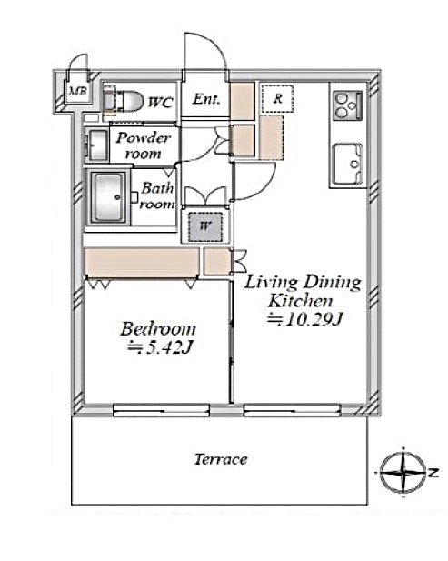 比較的小規模なマンションで外観はうすいブラウンのタイル貼り。