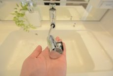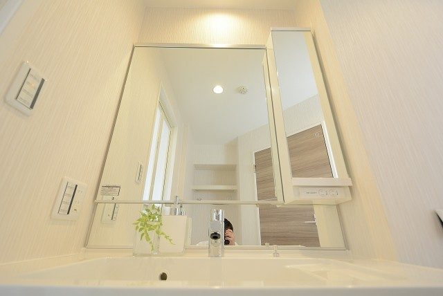 洗面ボウルの周りのドライスペースも余裕を持ってとられているので、ちょっとした小物の仮置きにも重宝します。