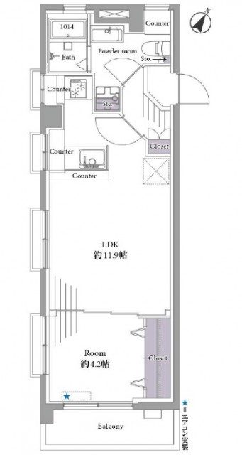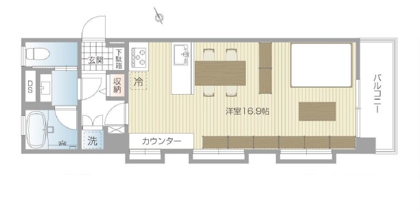 36㎡以上のお部屋ですが、あえて間仕切り壁を無くすことによって、