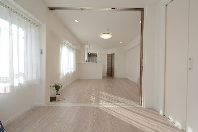 奥の洋室はリビングとスライド式のドアで仕切られています。