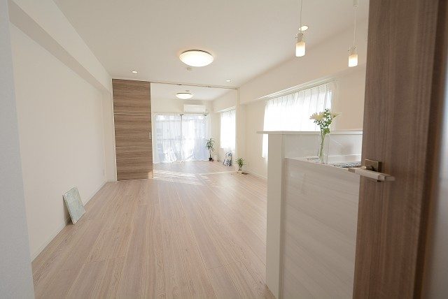 ■その他・・・フローリング貼替、建具・玄関収納交換、壁・天井クロス貼替、フロアタイル貼替、給湯器交換、エアコン(1基)、新規照明器具取付、収納棚新設、カラーTVモニター付きインターホン、スイッチ・コンセント交換、ハウスクリーニング