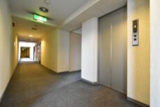 共用廊下はホテルライクな内廊下。カーペット敷きなので、廊下を歩く際の足音も響かなさそうな気がします。