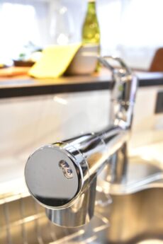 キッチンの水栓は浄水機能付き。ワンタッチで水道水から浄水に切り替えることができます。