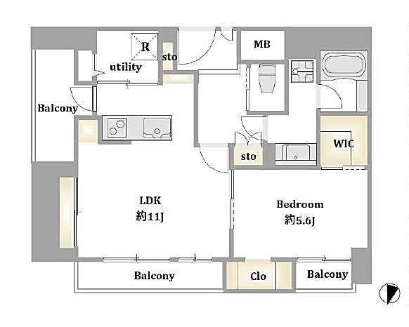 最後にバルコニーにでてみます。約2.36㎡とコンパクト。ほぼ西向きです。