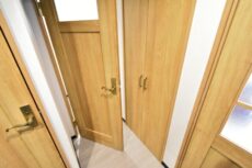 入口入って右手にバスルーム、正面にトイレ、左手に洗面化粧台と