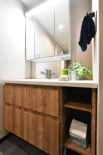 物が増えてゴチャゴチャしがちな洗面まわりもスッキリと整理できます。