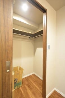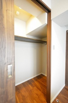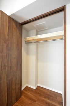 こちらのお部屋には、奥行がありL字にハンガーポールが設置されたウォークインクローゼットがあります。
