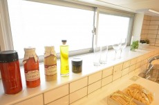窓際は幅が広いカウンターになっているので、調味料などキッチン周りのちょっとした物を置くスペースに重宝します。