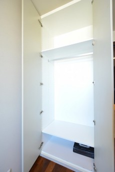 ベッドルームに入るとすぐ右側に大きなウォークインクローゼットがあります。