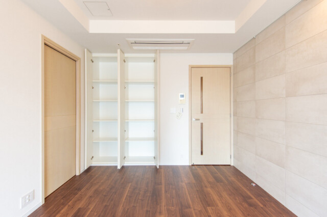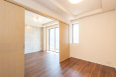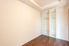 やはり南東向きのバルコニーに面したお部屋です。8.5帖と十分な広さがあり、ベッド2台やビッグサイズのベッドだって楽勝。メインのベッドルームにピッタリですね。ウォークインクローゼットも付いていますので、衣装ケースなどと組み合わせれば外に収納家具を置く必要もなさそうです。
