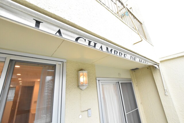 広げることによって暑い時期に無用な陽射しを遮ることができます。なにか文字が書いてあって・・・「LA CHAMBRE DE MAYA」フランス語で「マヤの部屋」ですかね??既成のデザイン??まさか前の居住者の方のオリジナル??ちょっと謎ですね(笑)ただ雰囲気は素敵です。