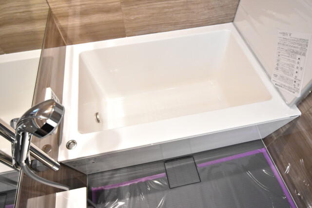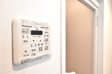 追い焚き機能が付いていてボタンひとつでお風呂の準備が可能。保温もしてくれるのでいつでも温かいお風呂に入れます。シャンプーラックは水が溜まらないワイヤータイプなのでお掃除も楽々ですよ。シャワーヘッドホルダーはスライドタイプ。