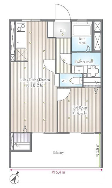 こちらは約10.2帖のリビング・ダイニング・キッチン。