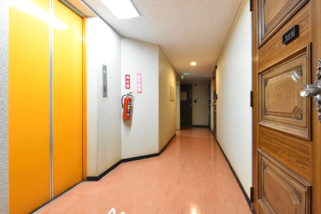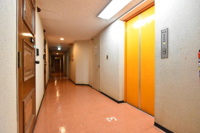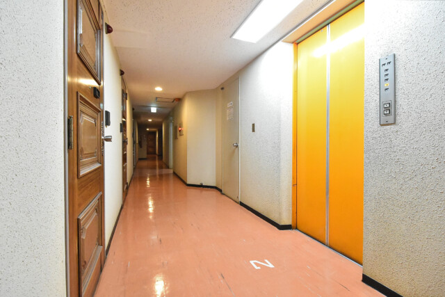 2階でエレベーターを降りて内廊下を進みます。内廊下は雨が吹き込んだりしませんし、防犯やプライバシーの面でもいいですよね。