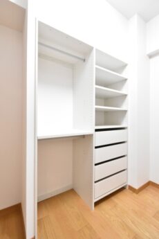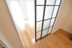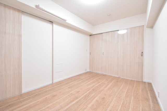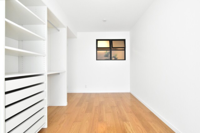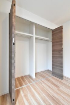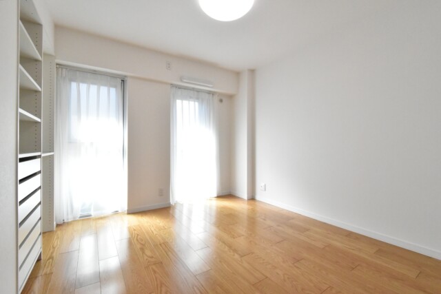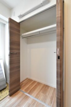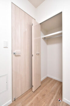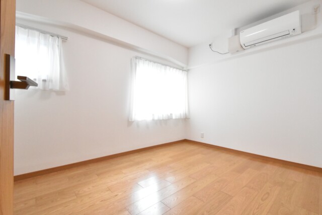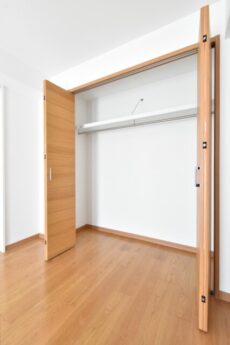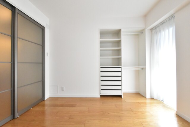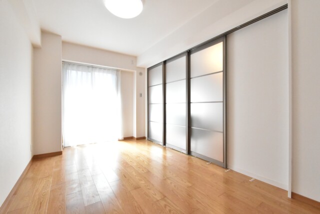 玄関入り右側にある洋室です。壁一面に真っ白なクローゼットがあり、これからの季節、厚手のコートやダウンもバッチリしまえそうです。窓もあり自然換気でき、光も入り寝室にいかがですか~