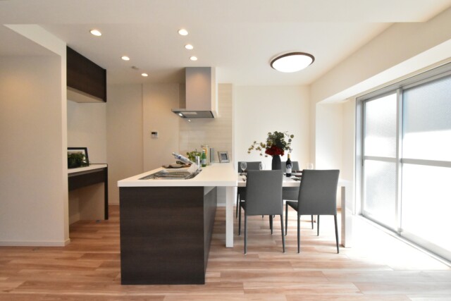 光が射し込み白を基調とした明るいリビング・ダイニング・キッチンです。