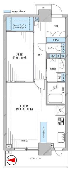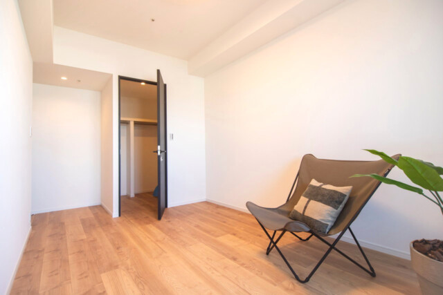 LDKから入りますが、ちょっとした廊下のようなところを通って行くので程良い独立感もあるお部屋です。窓の外は南向きバルコニーなので陽当たりも良好ですよ。収納は、大きなウォークインクローゼットと別に物入まで付いた充実ぶり!!