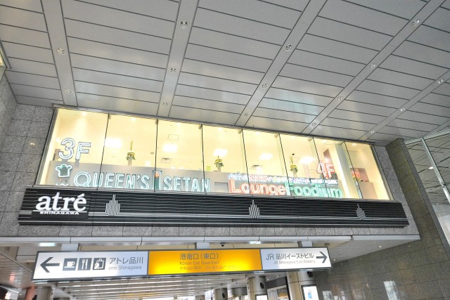 品川駅の改札から港南口(東口)までには駅ビルの「atre」があり、その中にスーパー「クイーンズ伊勢丹」が入っています。