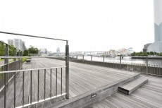 マンションの下には緑がたくさんある広場や、京浜運河に面した場所にはデッキテラスがあって、とても気持ちのいい場所です(^o^)