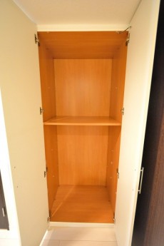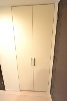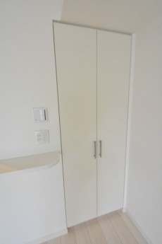 こちらは洗濯機置場の上に設置された吊戸棚です。なかなかピッタリの収納を見つけるのは大変なので、あらかじめ付いているととっても便利ですよね~(*^。^*)