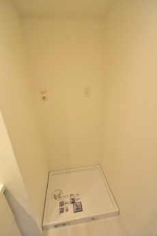 洗濯機置場には棚がありません。棚を上に設置するか、洗面台の収納を上手に使って、スッキリとお使いください(*^^)v