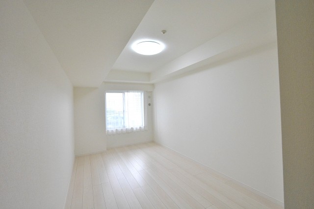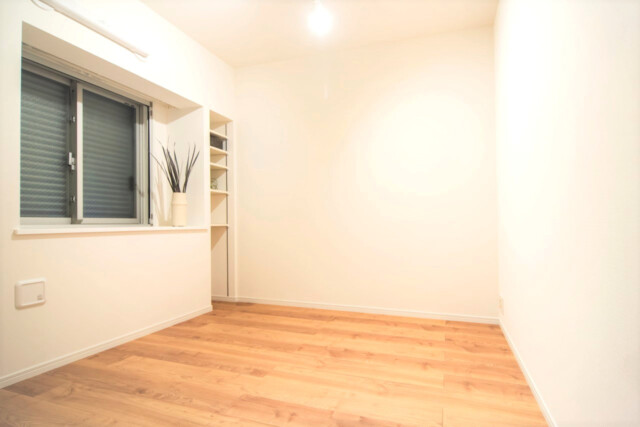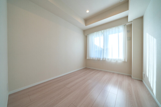 トイレの隣には9.8帖の洋室があります。室内は真っ白で、東向きの窓から明るい陽射しが射しこんでいました☆