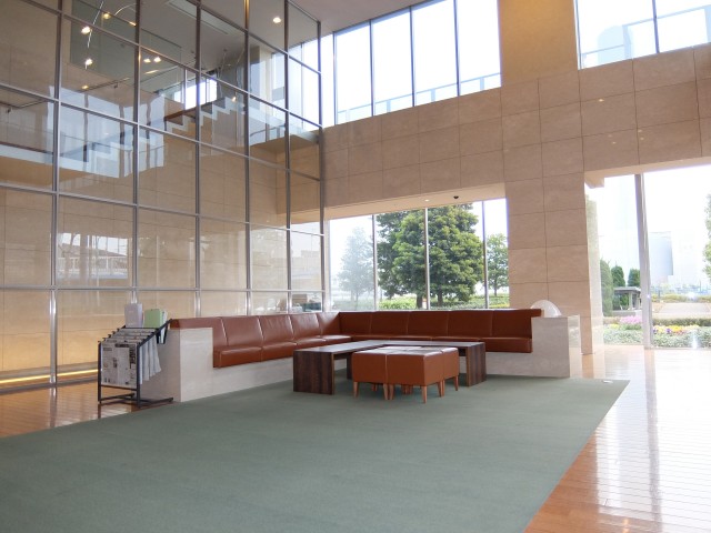 吹き抜けのエントランスホールには各種新聞が置かれており、ホテルのフロントの様です。