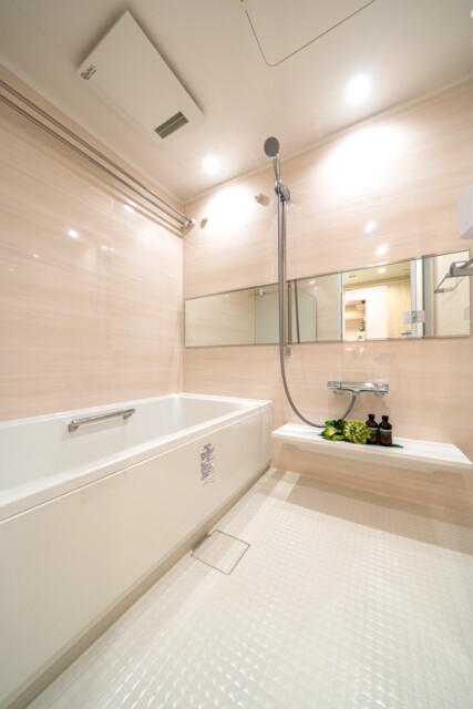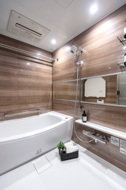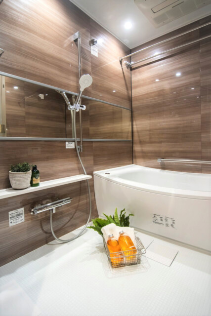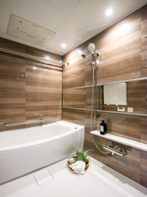 浴室はお部屋とトータルでコーディネイトされた木目パネル使用。リラックスしたバスタイムを過ごせそうです。また、浴室換気乾燥機が付いているのでお天気を気にせずに洗濯機を回すことも出来ますよ。