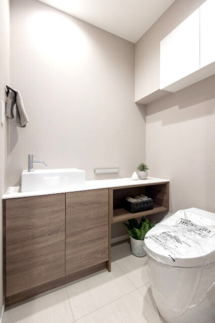 大きな吊り棚もありますので、トイレ内は清潔にスッキリお使い頂けますね(#^.^#)