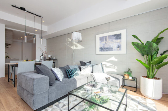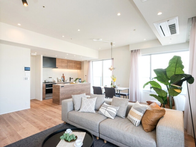 南向きバルコニーからの陽射しが似合う、ナチュラルカラーでまとめられた爽やかな雰囲気のお部屋です。