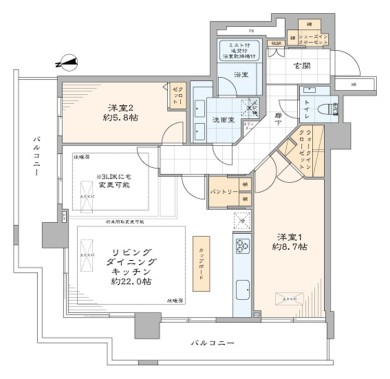お部屋は40階!専有面積86.98㎡の2LDK。広さ的には完全にファミリータイプなのですが、部屋数が少ないので2~3人家族の方がゆとりをもって暮らされるイメージです。今回の注目は、なんといっても最上階の40階ということ!どんな眺めか楽しみです♬